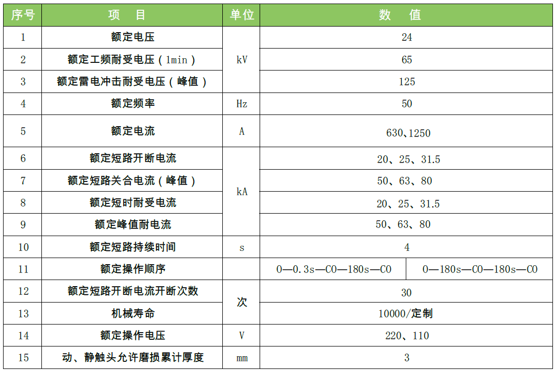 ZN63A(VS1)-24型户内高压交流真空断路器(以下简称“断路器”)是用于三相交流50Hz、额定电压为24kV的户内场所。应用在不同性质负荷及频繁操作的场合,可供工矿、企业、发电厂及变电站作电气设施的保护和控制之用,特别适用于冶金、化工和煤炭行业使用。